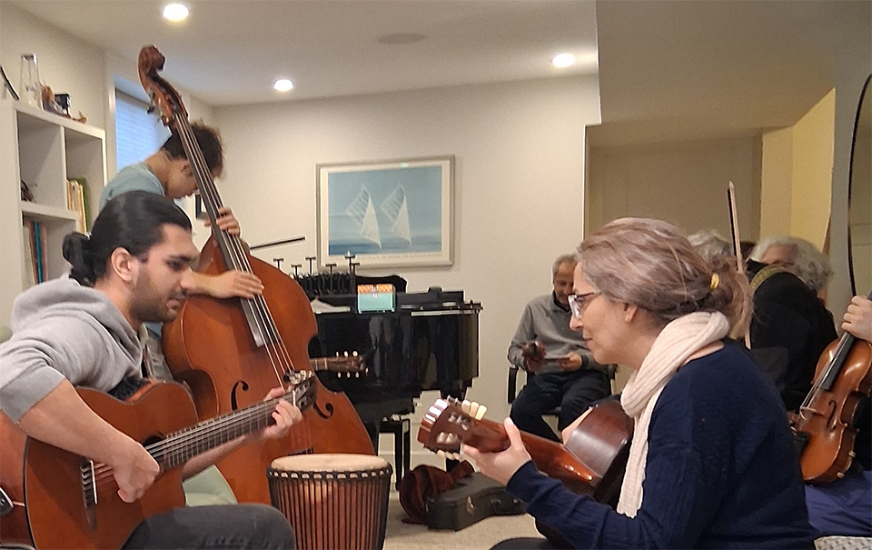 January 7, 2026 MUSIC JAM DEVOTIONAL TAKES FLIGHT! by Nathalie Thirlwall Although sounds are but vibrations in the air which affect the ear's auditory nerve, and these vibrations are but chance phenomena carried along through the air, even so, see how they move the heart. A wondrous melody is wings for the spirit, and maketh the soul to tremble for joy. - 'Abdu'l-Bahá, Selections from the Writings of 'Abdu'l-Bahá "Music is the ladder to the soul" as the Baha'i teachings inform us. Music has the ability to "lift us up onto the realm on high." The Ottawa Baha'i community has numerous musical escapades that bring joy to the heart. One recent occasion was the music jam devotional held on November 23 initiated by Sylvie Nantais and Natalie Venus. This took place at Sylvie Nantais' home. Musicians contributed their talents and their instruments, and there were some vocals as well. Those who were not musicians, but who wished to join in, were given percussion instruments as a means of adding their rhythms and enjoyment. In all, about a dozen people participated in this joyful event. Introduced with a Bahá'í sacred writing chanted to Indigenous drumming, the first musical piece began with one person leading and all instruments joining in. It was a magical piece with unusual and melodic synergy. We were all delighted. The second piece was somewhat chaotic, however. We realized that it worked best when one person started a melody and all others listened and joined in, musicians and non-musicians alike! So, each musician was given the opportunity to start with a piece of their choice. Bahá'í, Persian, folk songs and other types were played with great fun and a sense of unity. ![]() The magic reappeared. Drums, violin, guitars, bass, piano and shakers all came together in mystical and dynamic ways, as did the intergenerational musicians and would-be musicians. Some people added chants, others used their voice in song, each unique and uplifting. It was an experiment that proved so successful that a monthly jam session is planned. A second music jam devotional was held on December 14 and equally brought much joy and fellowship to all those who attended, which were about 10 people. In the spirit of the season, some of the songs were Christmas songs. The next one will take place on January 25, from 1-5, and any who would like to join in are most welcome, whether musician or not. and bring your friends! If you wish to join the music jam devotional, please contact Sylvie at smjnantais@gmail.com or Natalie at natven99@yahoo.ca. |